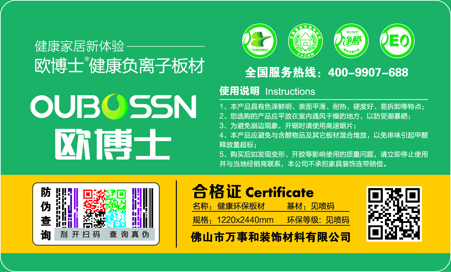 歐博士歷來重視板材的市場規范工作,公司本著"質量為本,誠信經營,服務用戶"的經營宗旨,區分假冒偽劣產品,提高消費者利益。